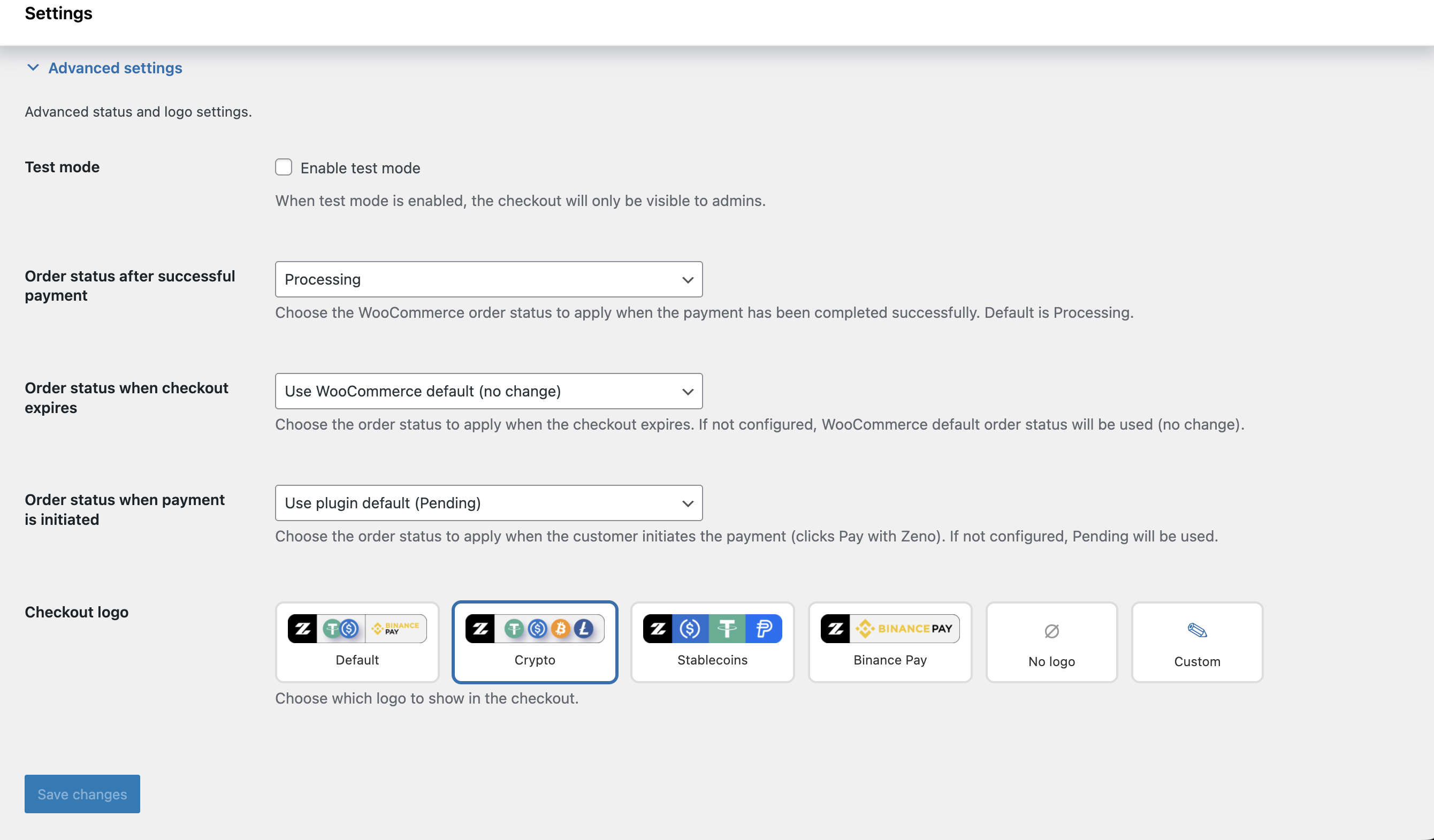 - Save changes, enable the gateway, and start accepting crypto payments.
